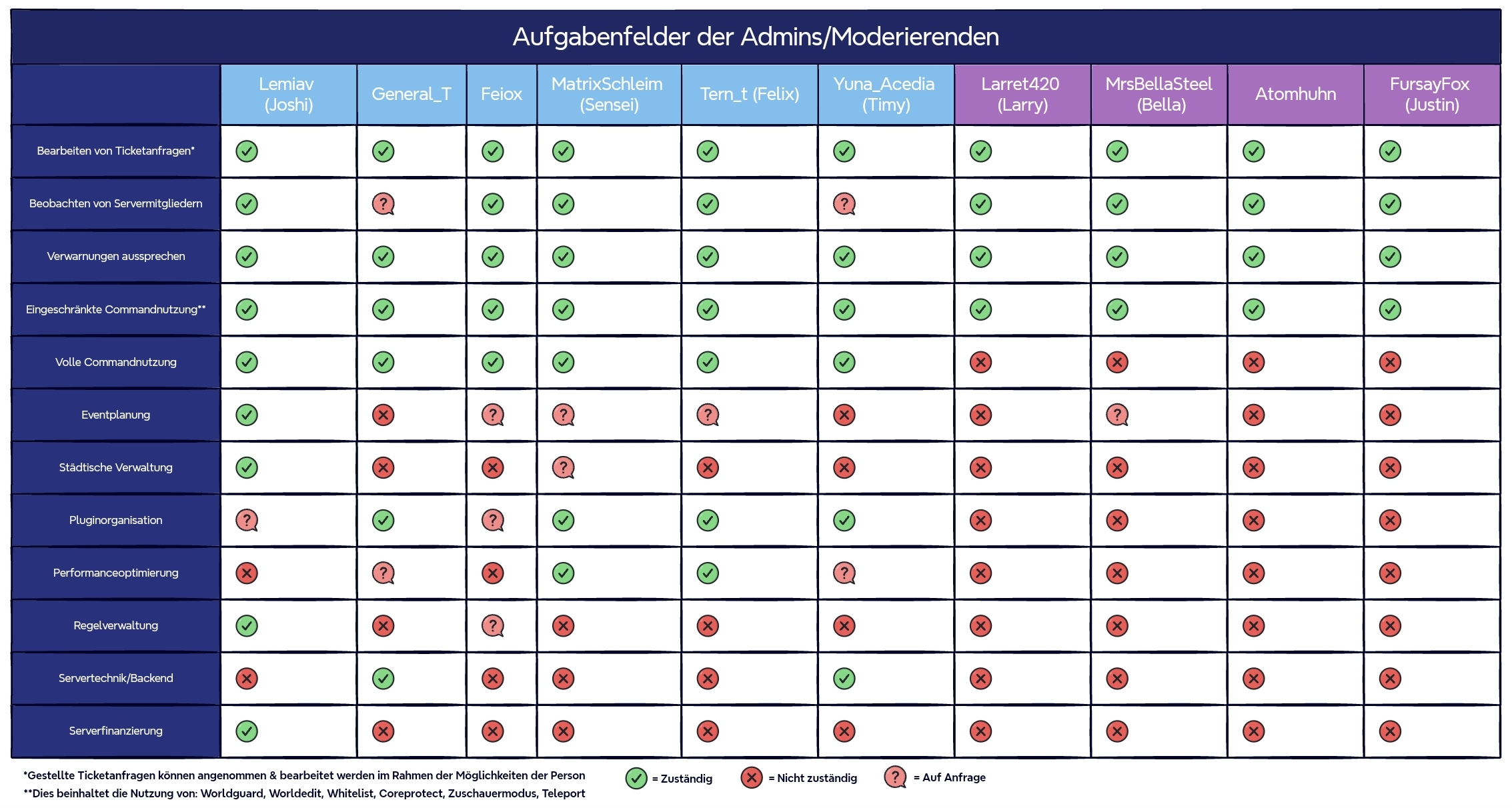 Schnellübersicht der einzelnen Rollen auf dem Minecraftserver